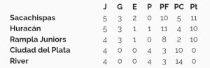 Fecha 7: Huracán vs Sacachispas, Rampla Juniors vs Ciudad del Plata. Libre: River