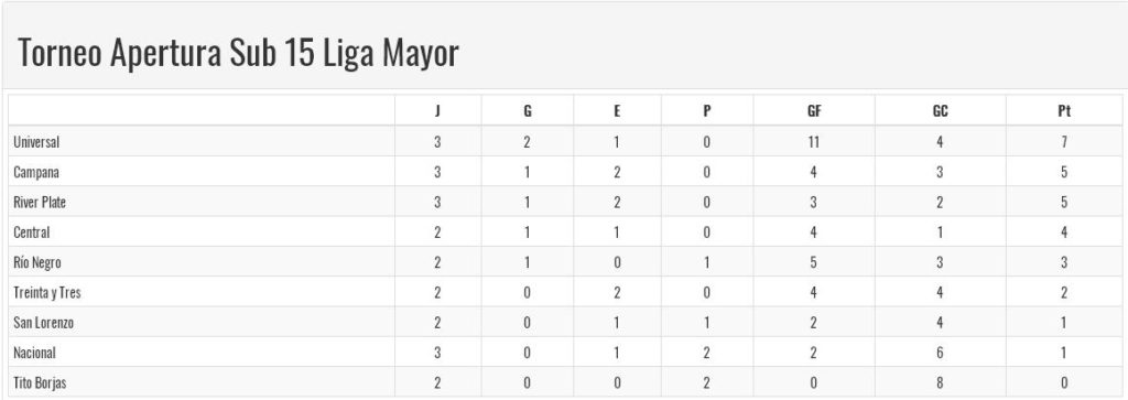 Sub 15 – Hora 09:30. Wilson Peraza – Bruno Rodríguez – Oscar Porley