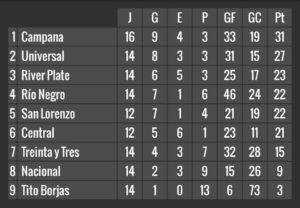 Goles: Román Belo (U), Enzo Cabrera (R.N), Guido Sosa (R.N), Juan Manuel Acosta (R.N), Matías Sánchez (R.N)