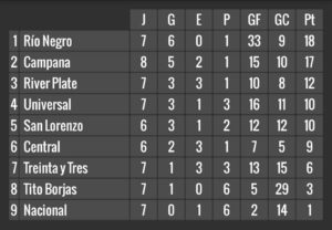 El Pedro Chanquet fue escenario de un cruce clave en las dos categorías, a primera hora Río Negro ganó con comodidad y festejó el título y en el segundo turno Universal lo dio vuelta para conseguir puntos clave en la definición del torneo. Central y San Lorenzo juegan entre martes y viernes, el choque en cuarta división tiene importancia en la definición.