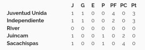 Próxima fecha: Juventud Unida vs Juincam e Independiente vs River. Libre: Sacachispas