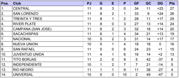 Central 3 – Campana 0 (Aplazado de fecha 10)