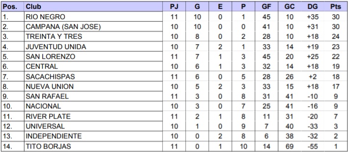 Río Negro 7 – Nacional 1 (Aplazado de fecha 10)