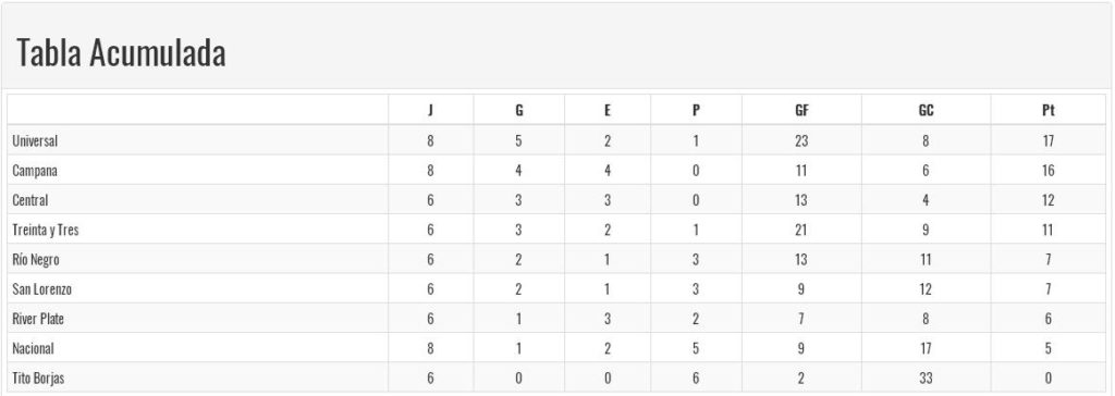 Treinta y Tres 8 – Tito Borjas 0