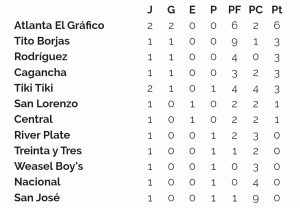Goles: Ramón González x2 (TB), Santiago López x2 (TB), Elías Núñez x2 (TB), David Rodríguez (TB), Matías Delgado e/c (TB), Juan Olivera e/c (TB), Alejandro Silvera (SJ)