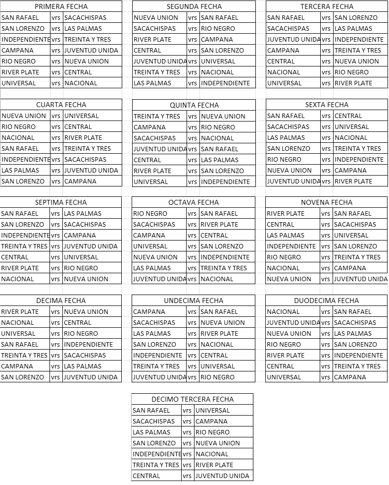 En esta oportunidad se resolvió que se desarrollen dos torneos, Apertura y Clausura, la principal variantes es que ya no existirán series sino que será “todos contra todos”. Son trece fechas, tras las cuales se mantiene la disputa de finales, en gran jornada final en el estadio del Parque Rodó. La definición de Oro contará con quien tenga más puntos en la tabla de colocaciones de cada categoría, enfrentará a quien surja de un partido entre segundo y tercero. Por el trofeo plateado irá quien caiga derrotado en ese cruce, frente al ganador de un enfrentamiento protagonizado por los ocupantes de los puestos cuatro y cinco. Lo anteriormente descrito se da en los dos torneos, que son independientes entre sí. Con respecto a la fecha de inicio, quedó pactada para el sábado 7 de marzo.