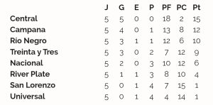 La reprogramación los llevó al 22 del presente mes, momento en el que no hubo dificultades, acumularon tres puntos el locatario Campana y Río Negro. Restan dos fechas de fase regular y luego se pasará a la definición de las posiciones finales.
