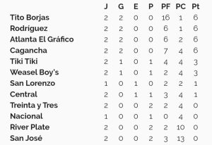 Hubo fútbol de viernes a miércoles, con la excepción del cruce entre Nacional y San Lorenzo que estaba pactado para martes pero se suspendió por las lluvias previas. Ni los tricolores ni los santos habían vencido en la fecha inicial, por lo que no son amenaza para los cuatro contendientes que acumulan seis puntos y son líderes.