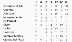 Se desarrolló la séptima fecha del Clausura en el sector interior, a nivel de su actividad Senior, y trajo varias sorpresas. Tanto el puntero de la anual Juventud Unida que perdió como local de River, como Juincam que empató en Cañada Grande frente a La Paz, dejaron unidades por el camino.