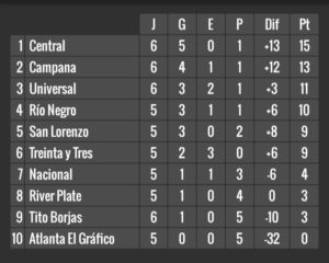Central es puntero en las dos categorías al cierre de la sexta del Apertura