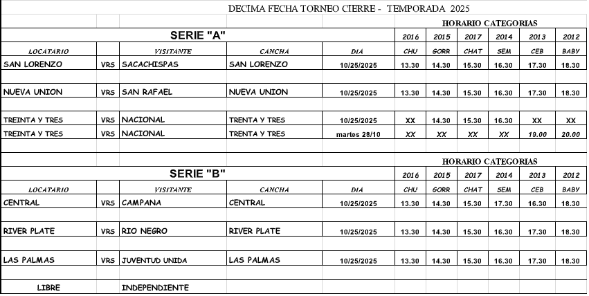 El fútbol infantil mixto de Liga Departamental vivió un fin de semana especial por las características de su fecha, que agrupó a la mayoría de los partidos en el interior del departamento. Ya sin Tito Borjas en la competencia, son tres cruces por serie, y un equipo en cada una que queda libre (en esta oportunidad fueron Nacional en la “A” y Río Negro en la “B”).