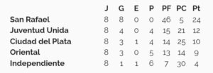 La victoria de Juventud Unida en el primer turno generó que la acumulada no esté definida aún, ya que está el verdolaga a doce puntos de la punta con la misma cantidad para jugar, seguramente con el inicio del Clausura se confirme que San Rafael también se quedó con la anual y por tanto con otro derecho en la definición del campeón de la temporada 2023.