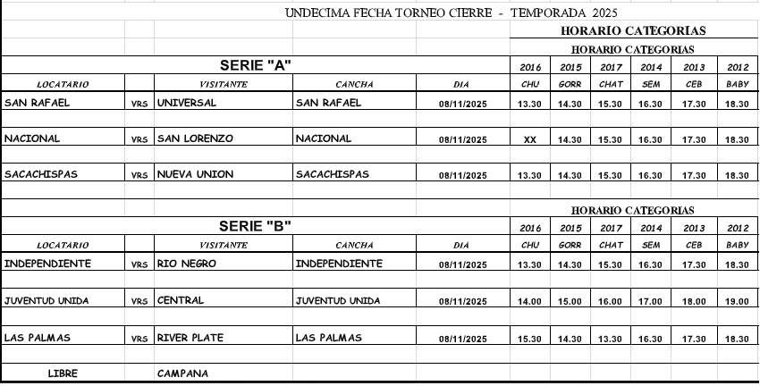 En el último fin de semana de octubre la organización del baby fútbol decidió la suspensión de lo previsto, producto de lluvias que cayeron horas previas e incluso en la tarde donde se debían jugar los partidos. Por lo tanto niñas y niños debieron esperar siete días para volver a competir, en el marco de la fecha diez del campeonato “Cierre”.