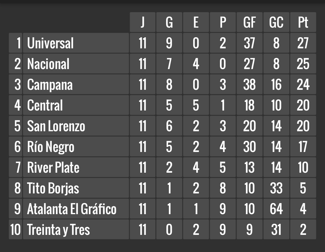 SEGUNDO TIEMPO: Desde camarines traía un gol Atlanta El Gráfico que se puso en partido de una jugada a pura habilidad de Flavio Artigas que habilitó a Martín Camejo quien sólo la tuvo que empujar. El segundo tiempo del santo fue muy flojo, por lo que los del Barrio Colón se adelantaron y generaron contra la portería rival, un desborde por izquierda con pelota al corazón peligro fue de extremo peligro porque Risvegliato entró lanzado y suelto pero «Pancho» Paredes a puro reflejo salvó a boca jarro. En la primera que generó el local en todo el complemento encontró la calma, Nicolás Reyes corrió por la punta y sacó atrás para Cháves que definió anotando un hattrick personal. Se desmoronó el elenco del Barrio Colón, Matías Sotto e Ignacio Martin le aportaron piernas frescas al ataque santo, que a poco del final puso el quinto con balón en centro de Durán que generó un rechazo corto finde Cháves otra vez sobre la línea final definió. El sexto fue obra combinación de los juveniles, Sotto dejó a «Nacho» Martin en el área quién disparó fuerte y contra el parante. Llego uno más, en este caso de Sotto tras cabecear al travesaño y capturar la segunda pelota definiendo solo, para cerrar el score.