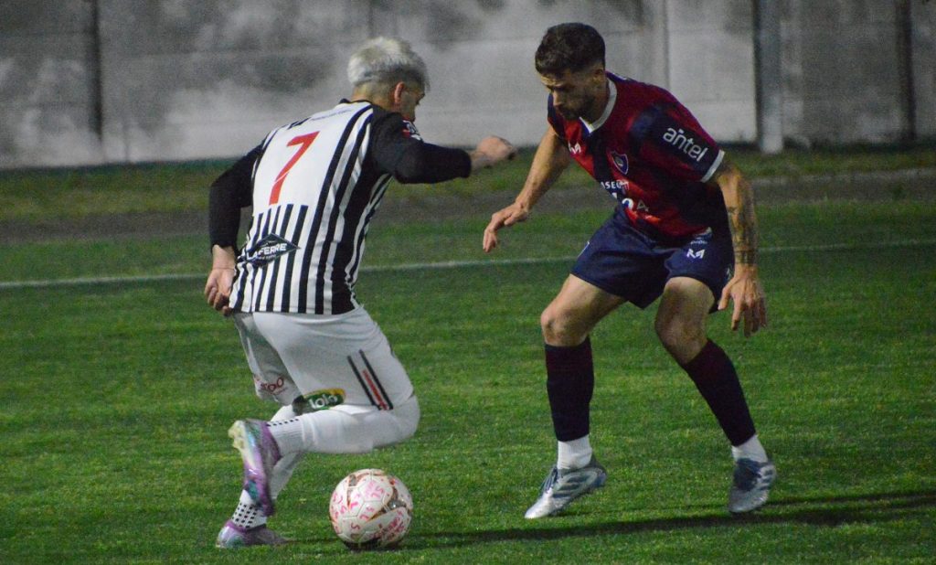 Al partido llegó San Lorenzo con ventaja deportiva sobre Río Negro, pero ese empate favorable al santo se quebró rápidamente, por lo que la tribu pasó a estar todo el primer tiempo en situación de clasificación. Aún no se había armado el partido cuando una falta de Guzmán Montero sobre Juan Manuel Acosta generó tiro libre en cercanías del borde del área, abrió el pie Liber Quiñones y la pelota pasó en una precisa trayectoria por afuera de la barrera, entró contra el ángulo izquierdo pese a que Francisco Paredes llegó a manotear. La responsabilidad pasó a ser del azulgrana, que sintió el golpe en la porción de partido siguiente, pero después fue dominador claro pero sin efectividad. Antes estuvo cerca el segundo tanto en un balón cruzado de izquierda a derecha en el que Acosta le ganó a Montero, estaba algo adelantado Paredes y el 14 intentó tantear por arriba, pasó cerca del horizontal. Desde ese momento el local monopolizó la posesión del esférico, por momentos trianguló de manera interesante y llegó con facilidad, pero se diluyó permanentemente en el área. De todas formas tuvo algunas acciones para empatar, por ejemplo en centro por su banda de Montero que encontró sólo por el segundo palo y de frente a Dilan Clark, cabeceó de mala forma y no acertó a portería. Pasando la media hora quedó muy mal parado la visita y los de César Basilio atacaron con superioridad numérica, Montero la cedió por dentro a Yonhatan Bentancor que controló y pateó desde la media luna, atajó de gran forma Bernardo Long. Una jugada parecida pero desde el otro lado fue combinación que terminó Álvaro Rodríguez en pase a Vincent Hórnes, el 8 acompañaba y recibió para tirar, tapó Long y en el rebote convertía Montero pero estaba adelantado. En descuentos tuvo la última, otra vez con salida rápida y pases que llegaron a Octavio Pérez, el mediocentro cedió a Iván Reyes que pisó el área con perfil hábil para tirar pero el útil tomó altura y pasó cerca del ángulo derecho.