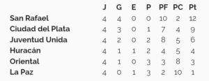 En la noche de martes se cerró la cuarta fecha en la Serie A, con el siempre atractivo cruce entre Juventud Unida y San Rafael, en el que el equipo de Rafael Peraza se impuso por uno a cero. De esta manera los dirigidos por Andrés Larre suman su triunfo número cuatro, sin haber dejado unidades hasta el momento.
