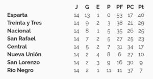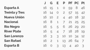 Clausura: El segundo campeonato de la temporada se jugará en dos copas: Oro y Plata. En la primera estarán las cuatro instituciones con mejor puntaje acumulado entre las dos categorías, y en la segunda los cinco restantes. Cabe señalar que Central y River Plate acumularon juntos (juegan cada uno en una sola generación). La tabla general cuenta con el siguiente puntaje: Esparta A 96 pts, Treinta y Tres 71, Nacional 50, Nueva Unión 42 (Oro), Central/River Plate 36, San Rafael 30, Río Negro 27, San Lorenzo 21, Esparta B 3 (Plata).