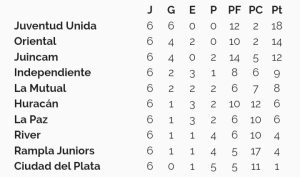 Los primeros tres de la tabla de posiciones en Clausura y Anual lograron sumar puntos en fecha seis