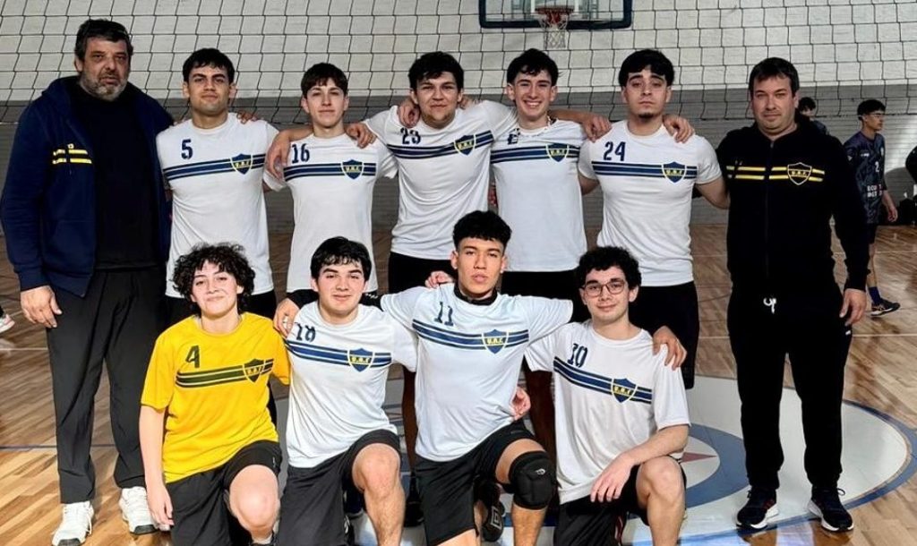 Tabla de posiciones: Lobos (Florida) y Unión Atlética (Florida) 11 pts, Asociación Cristiana de Jóvenes (San José de Mayo) 10, Santa Voley (Santa Lucía) 9, Río Negro (San José de Mayo) 7