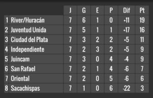 Tabla Anual: Juincam, San Rafael, Independiente y Juventud Unida 19, Ciudad del Plata y Oriental 10, Sacachispas 5, River/Huracán 2