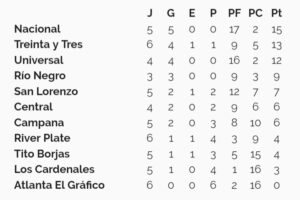 Tres partidos el domingo, uno esta noche de martes, y el clásico que fue aplazado fueron los encuentros de la sexta del Apertura. Treinta y Tres, San Lorenzo, Universal y Nacional sumaron de a tres puntos para avanzar en la tabla de colocaciones.
