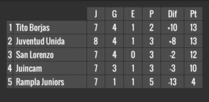 Goles: Enrique Mignone (S.L), Pablo Curbelo (S.L), Martin Rodriguez Perez (S.L), Alejandro Mendez x2 (J.U)