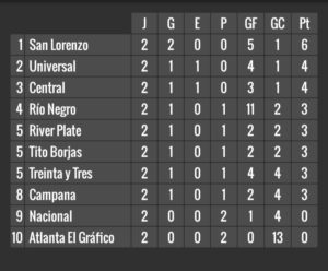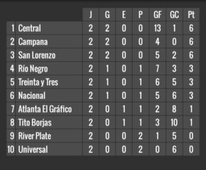 Río Negro 6 – Atlanta El Gráfico 0 (De la primera fecha)