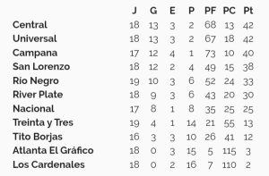 SEGUNDO TIEMPO: Se fueron a camarines con una renta que parecía definitiva, y no hubo mayores cambios en el trámite del complemento, donde siguió siendo más peligroso Universal. Entró desde camarines Ángel Cardozo por Joaquín Irazoqui y en la primera que capturó fue maniobrando hacia adentro ya en el área, sacó el latigazo rasante, lamió el palo la pelota y se perdió afuera. Cantó la lotería le albiverde en la siguiente, volvió a ser con superioridad numérica el ataque ante un rival muy desprotegido, Navia entró por derecha y mandó el centro por bajo que del otro lado sólo tuvo que empujar en la boca del arco Cardozo. Pese a que el partido ya estaba perdido, River Plate nunca bajó los brazos y con pundonor siguió intentando, en los treinta minutos finales fue el dominador pero ya el resultado era muy abultado en su contra. Tuvo alguna oportunidad de descuento, por ejemplo en definición llegando a espaldas de todos de Franco Gutiérrez que la mandaba hacia el fondo de portería, la sacó en la línea Braian Rocatti. Sobre la media hora logró convertir, en útil bien jugado a espaldas de los marcadores para Santiago Clara, la jugó hacia atrás y Zanoni que acompañaba tuvo premio para resolver sin marcadores cercanos. Zanoni pudo haber llegado al hattrick, porque le cometieron penal cuando faltaban diez y descuentos, lo que podía poner en partido a su equipo. Eligió un tiro bajo y fuerte al medio del arco, Jara se volcó pero no pasó todo el cuerpo, y por eso salvó con los pies. Ahí se le fue definitivamente el encuentro al local, y pudo haber habido una diferencia mayor porque los contragolpes fueron permanentes, pero el visitante perdió efectividad y por eso no anotó alguno más. Gran victoria de Universal, para seguir buscando sus objetivos, River Plate no consigue sumar unidades ante rivales de zona alta y llegará a los playoffs sin ventaja deportiva.