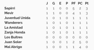 Próxima fecha: La segunda jornada será en el Complejo «Gerardo Vasco Asconchilo» de Juan Soler, el próximo domingo 6 de abril. El programa de partidos es el siguiente: Sapirri vs Los Buitres (09:00), Juan Soler vs Wanderers (11:00), Mal Abrigo vs La Amistad (13:00) y Zanja Honda vs Juventud Unida (15:00).